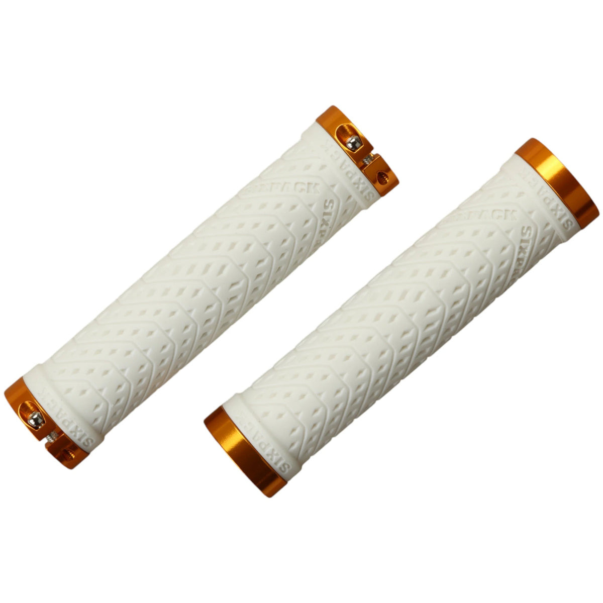 Pereche de mânere pentru biciclete de munte Sixpack K-Trix, cu sistem de blocare, alb și auriu