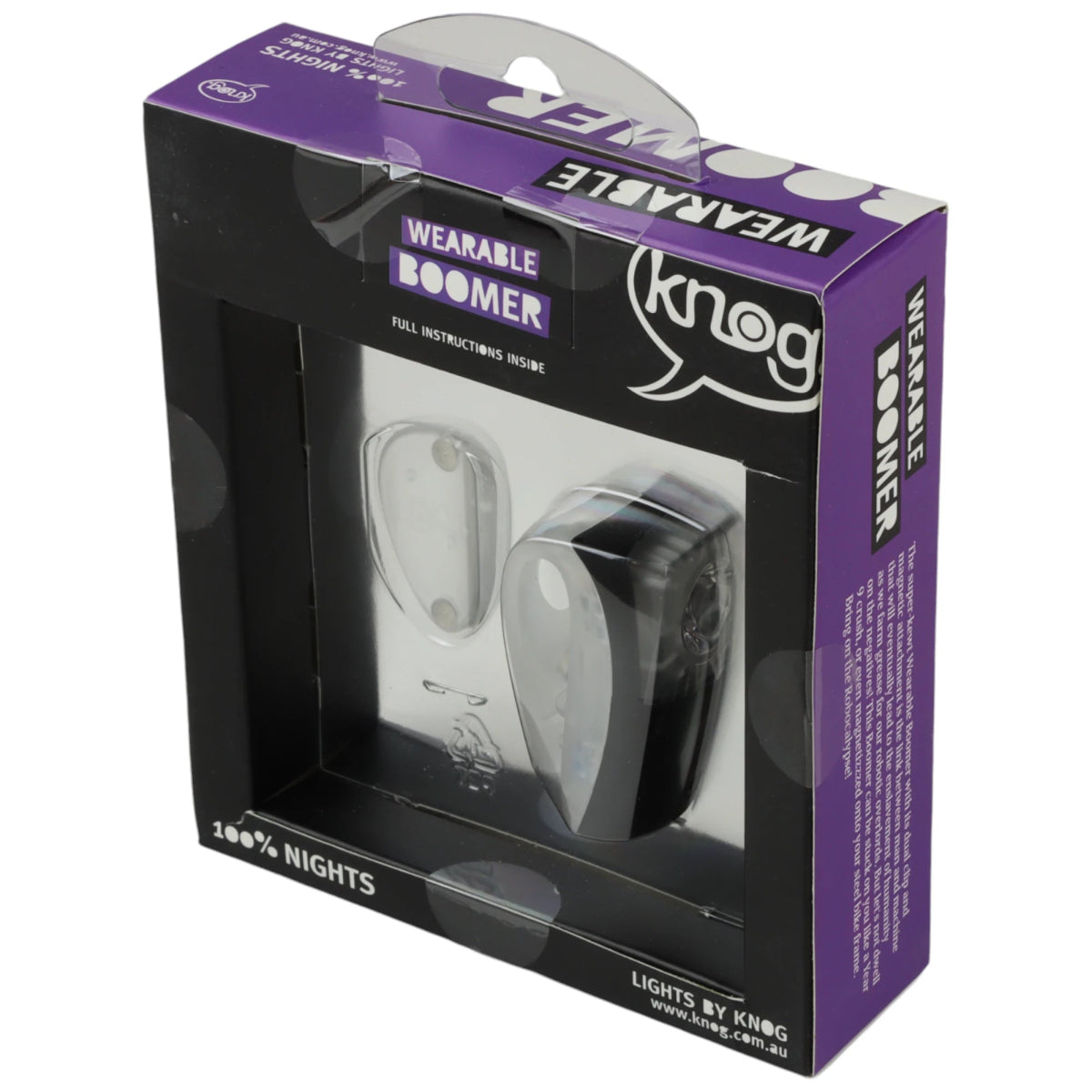 Lampa spate Knog Boomer Wearable este o lampă spate puternică și versatilă, ideală pentru ciclism, alergare, drumeții și alte activități în aer liber. Dispunând de un LED de mare putere, oferă o vizibilitate excelentă în condiții de lumină slabă. Datorită opțiunilor flexibile de montare, lumina poate fi ușor atașată la haine sau alte obiecte folosind magneți sau cârligul integrat. Deși lampa spate Boomer nu respectă reglementările germane de trafic rutier (StVZO), este perfect potrivită pentru activități recreative și off-road.