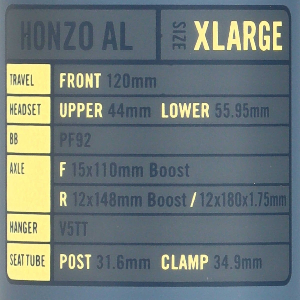 Cadrul este proiectat pentru roți de 27,5" și o furcă cu suspensie cu cursa de 120 mm . Partea spate Boost (12x148 mm) asigură o rigiditate ridicată și o manevrabilitate precisă. Cu un suport inferior PF92 și o țeavă furcii superioară de 44 mm / inferioară de 55,95 mm standard, cadrul îndeplinește standarde dovedite.