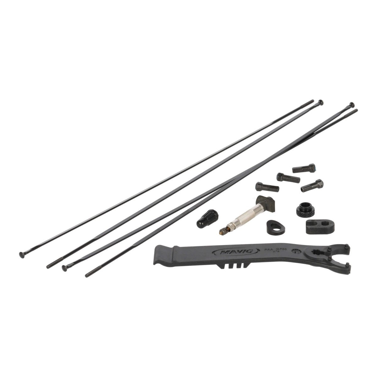 - Bandă de jantă (preinstalată), valvă tubeless, spițe de rezervă