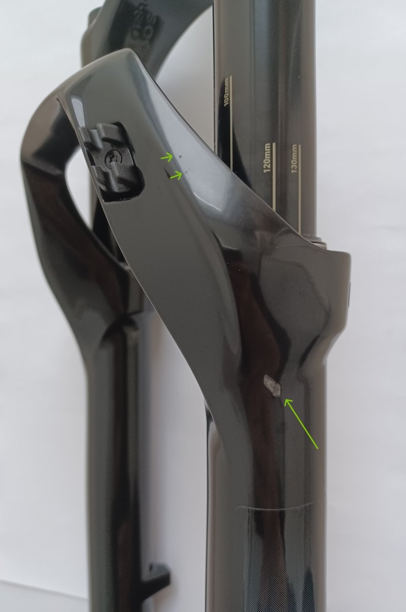 Acest articol este un produs de calitate B cu semne de depozitare ( crestături pe tijă și crestături minore pe coroană, la joncțiunea cu tubul de direcție). Vedeți fotografiile detaliate cu marcaje. Furca este complet funcțională și nu a fost niciodată instalată sau utilizată.