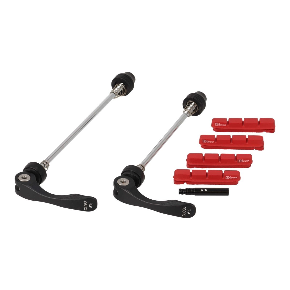 - Roți de curse cu frână pe jantă și prindere rapidă (100/130 mm)